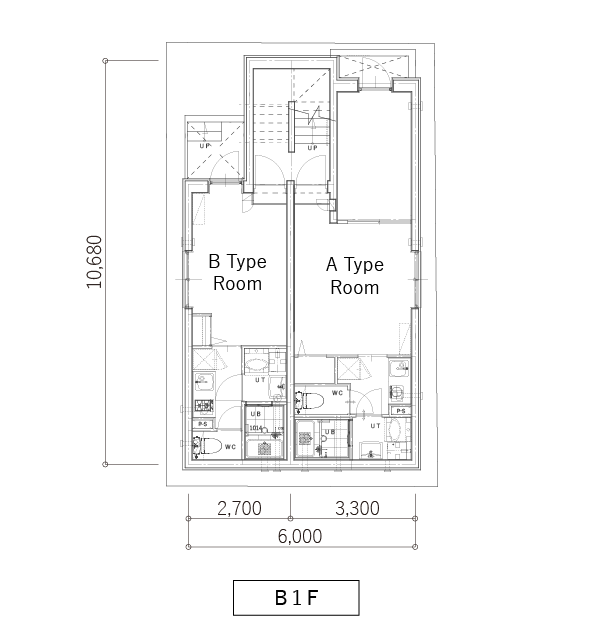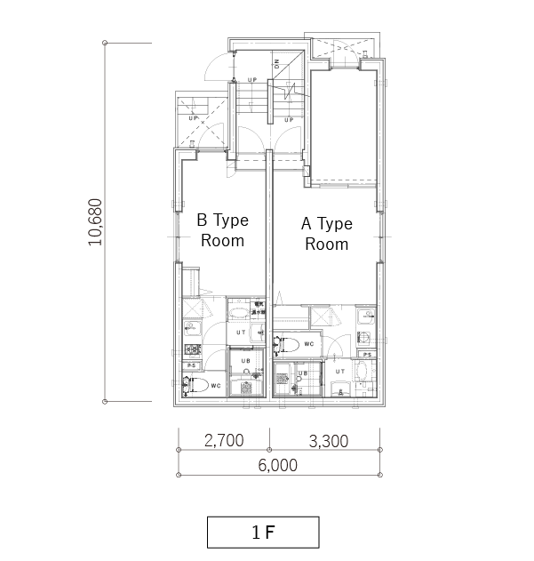 賃貸となる部屋は各フロアーにAタイプとBタイプの1K間取りが2戸、全体で12戸となります。
